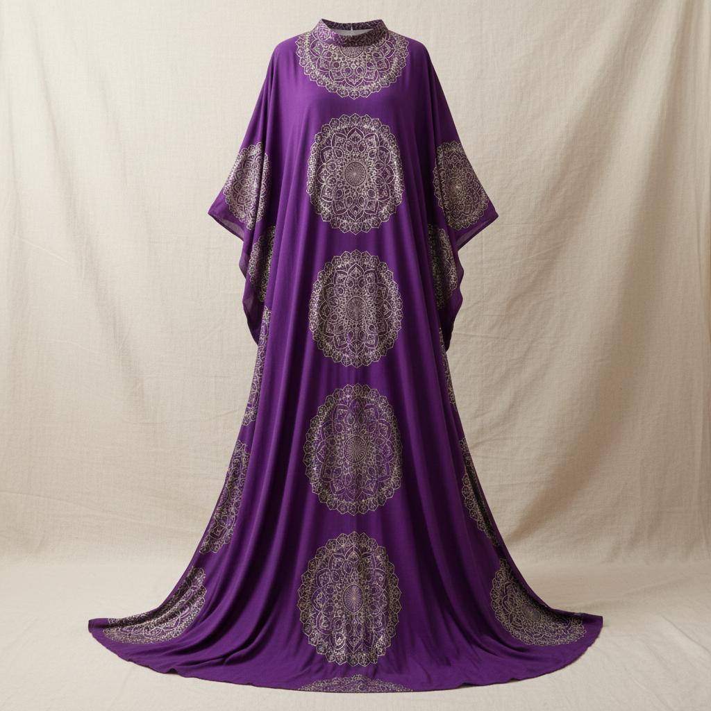 Flowing maxi dress with spiritual symbols, comfortable for meditation and daily wear