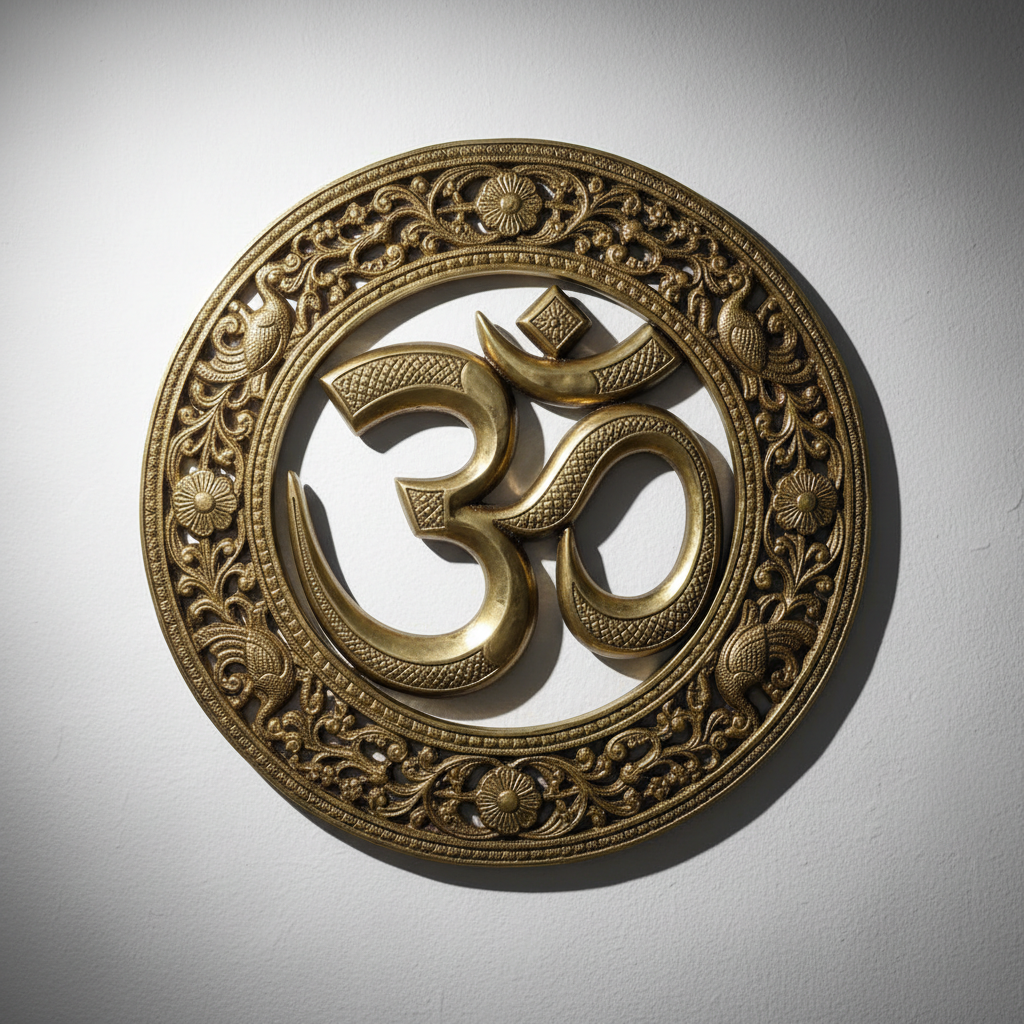 Handcrafted wooden Om symbol for meditation space decoration and spiritual focus