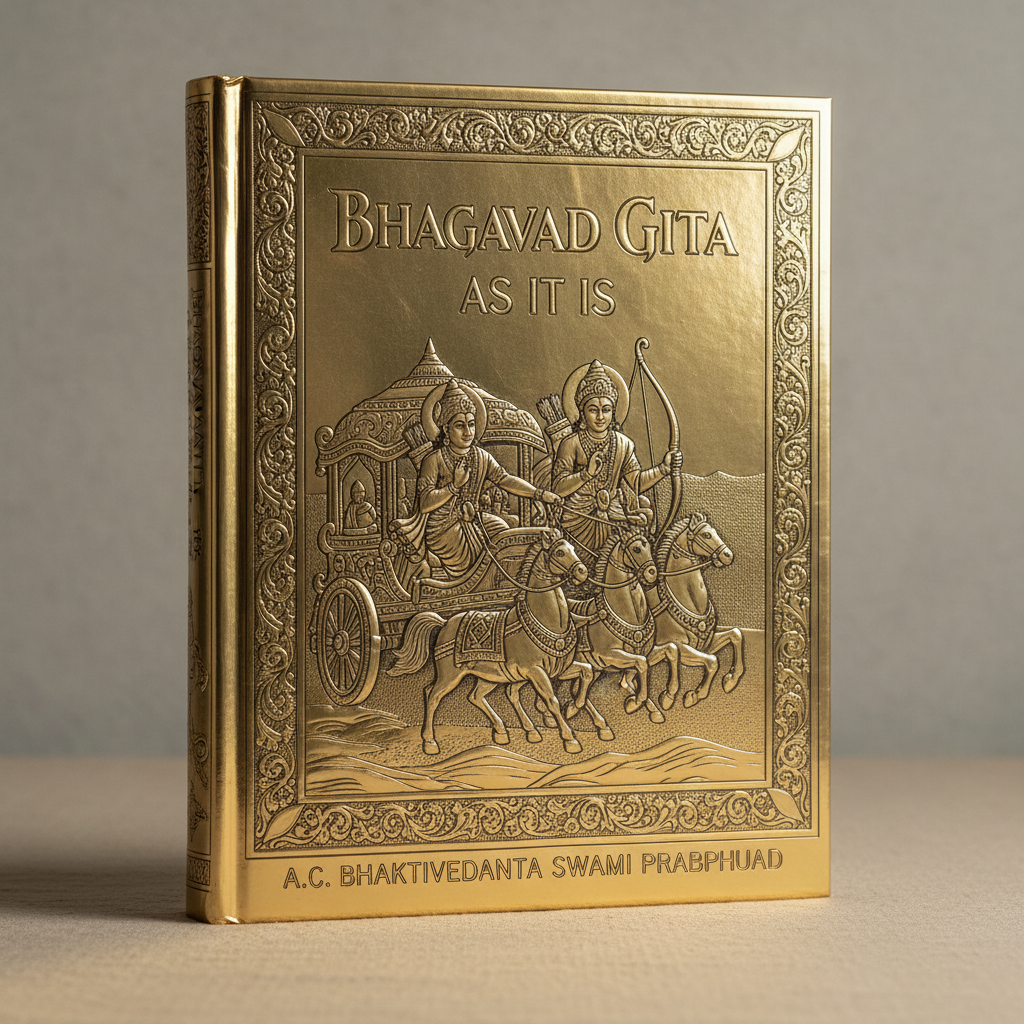 Ancient Hindu scripture with commentary, essential religious text for spiritual seekers
